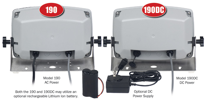 Cardinal's 190 STORM weight indicator is built for extreme-use applications and the IP69K-rated polycarbonate enclosure withstands high-temperature (up to 176F/80C), high-pressure washdowns (1450 PSI). Built for extreme-use applications in the weighing industry, the 190 STORM’s IP69K-rated polycarbonate enclosure withstands high-temperature (up to 176º F / 80º C), high-pressure wash downs (1450 PSI). The Cardinal 190 STORM features capacitive touch keys, 1-inch-high clearly visible LCD digits, built-in RS232 communications port, and versatile power options: AC, DC, and rechargeable battery.