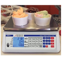 Ideal for retail frozen yogurt, ice cream, coffee beans, nuts, and candy stores, DETECTO’s DM15 price computing scale features a unique 240 ounce capacity by 0.1 ounce accuracy (15 lb x 0.005 lb). The DM15 scale offers up to 99 easy-to-add PLUs for fast reference (14 direct quick keys and 85 indirect PLUs) and displays Weight, Unit Price, and Total Price on the front and rear backlit LCDs (up to six 0.5-in/13-mm high digits) for both the operator and customer to view simultaneously.