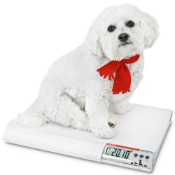 The scale is designed for smaller pets like cats, small dogs, rodents, and lizards with a sturdy and easy-to-clean weighing platform and low-profile design constructed of durable high-impact plastic. The programmable Auto-Shutoff turns off the scale when not in use to conserve batteries (adjustable up to 5 minutes). The Memory key recalls the last stored weight or update the weight.