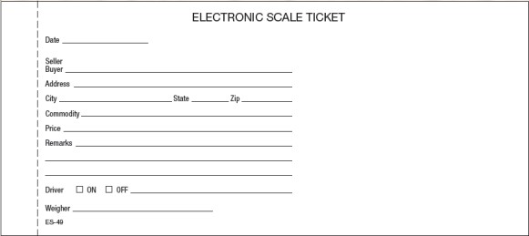 ES-49 Electronic Scale Tickets from Central Carolina Scale feature 4 Parts, Size: 4 x 9 INCHES, White Bond Papers, Blue One-Time Carbon
