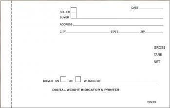 Form 510 Cardinal Scale Tickets, Size: 5 x 7 7/8 INCHES, 4 Parts, White Bond Papers, Blue One-Time Carbon. Items on ticket are: Date, Seller/Buyer, Address, City, State, Zip, Gross, Tare, Net, Driver on/off, Weighed by