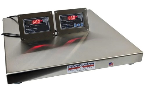 Look around the airport terminals throughout the US and you will often find the rugged and simple to use American Made Pennsylvania Scale Company M64+ airline baggage scales. Ideal choice for the demanding environment of weighing suitcases and cargo that goes on an airplane. NTEP approved. Sizes: 18x24, 24x24 Capacity: 250, 500, or 1000 lb.