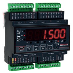 216826 Indicator,SCT-4X-MODTCP High speed 4 channel Din rail weight transmitter, with 2 IN, 2 OUT and MODBUS TCP/IP port. 5-key keypad, LED display.