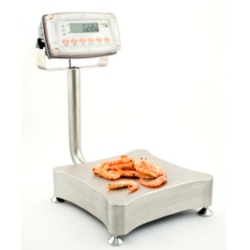 Stainless Steel Platform 300x300mm/12x12" and Tubular Frame, IP67 aluminum load cell (L6E3-A3-150kg-3B), max capacity 100kg/250lb. 36-38 mm stainless steel pole included. NTEP Approved.