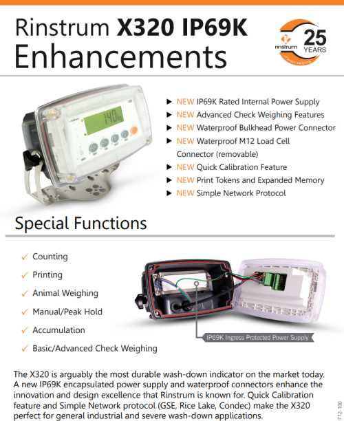 Rinstrum X320 combines innovation in industrial design and engineering excellence to create an instrument that is ideal for use in food processing, automotive, chemical or pharmaceutical applications or applications that require reliable operation in harsh environmental conditions.