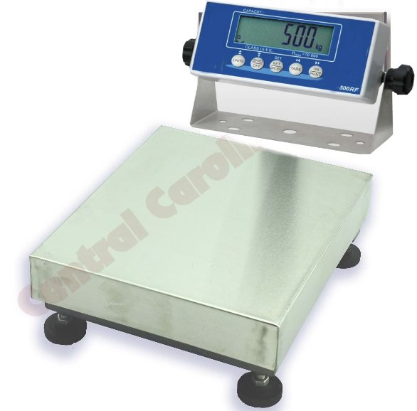 The 500RF features a 12" x 14" platform which allows for easy weighing. Please keep in mind, the 500RF series is a low cost, yet versatile and relatively portable scale. Please note this scale readout is not wash down safe. But, if you're looking for a good quality basic digital scale, battery power, hold function, remote platform with adjustable feet, serial port... etc... all at a good price, this is the scale for you.