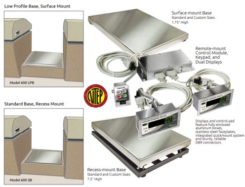 Low Profile Baggage Scale, 300 lb x 0.5 lb, Platform sizes up to 48” x 36” or 1782 sq inches, Dual Flush Panel Mount