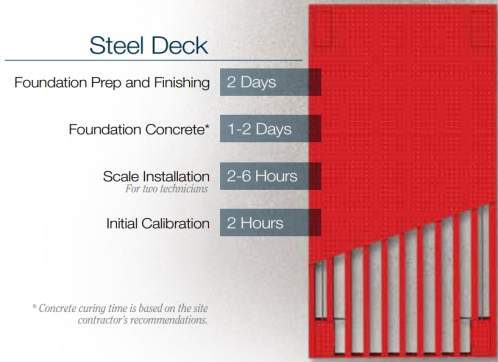 The concrete platform is more expensive and requires finishing labor and curing time, but is not subject to corrosion. Concrete can, however, deteriorate with age and weather. Generally speaking, a concrete deck is a better choice for high traffic applications. Another consideration is that a weighbridge with a concrete deck is much more difficult to move at a later date than a weighbridge of similar size with a steel platform.